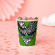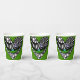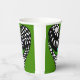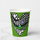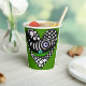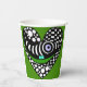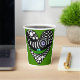 Resumen de corazón blanco y negro sobre tazas de papel verde. Diversión para cualquier fiesta.
