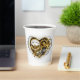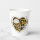 Corazón mecánico, volumétrico, de vapor punk con manómetro de presión, acero y engranajes dorados sobre fondo blanco. Estilo Steampunk.