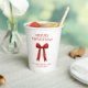 Cuestas de papel para Navidades con un diseño simple y minimalista con un arco rojo junto con el saludo "Feliz Navidad" y el nombre de tu familia.