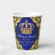 Prince baby ducha tazas de papel con hermosas coronas reales azules y doradas sobre un fondo real azul y dorado giratorio.