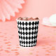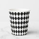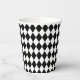 La taza de papel de la fiesta de Halloween se muestra con una huella de diamante harlequin. Color Negro/Blanco Personalizar este artículo o compra como está. Imagen de stock vecteezy.com