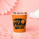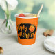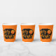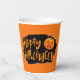 Este vaso de papel se muestra en un diseño festivo de calabaza temible de Halloween Happy. Personalizar este artículo o compra tal cual. Imagen de stock