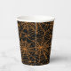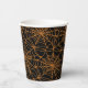 La copa de papel de la fiesta de Halloween se muestra con una telaraña impresa. Colors Black & Naranja Personalizar este artículo o compra como está.