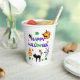 Estas tazas presentan las palabras "Halloween feliz" en un estilo espeluznante con letras violetas y verdes rodeadas de una colección de calcomanías temáticas de Halloween en este tema espeluznante y estilo. Todas las tazas vienen en un conjunto de ocho o más y tienen 8 oz de fabuloso para fiestas de cumpleaños, picnics de verano y eventos. Todos los platos están aprobados por la FDA para el contacto con los alimentos y mantienen las bebidas calientes o frías impresas opcionalmente en Estados Unidos.