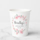 Las hermosas flores de cerezo rosa crean una corona romántica. El nombre del celebrante de cumpleaños está escrito en el centro. Este diseño de taza de papel forma parte de la colección Cherry Blossom. Contiene muchas plantillas de suministro para fiestas de cumpleaños número 100.