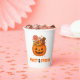 Sirva sus bebidas con estilo festivo con esta taza de papel de Halloween que incluye una sonriente cubeta de calabaza llena de coloridos caramelos y copas. Perfecto para fiestas de trucos o de tratamientos, eventos para niños o reuniones de otoño, este diseño lúdico le da un toque divertido y espeluznante a su celebración. Ideal para huéspedes fiestas que deseen estilo y comodidad.