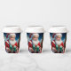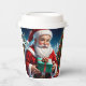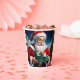 Esta taza de papel presenta una paleta de colores rojo y verde festiva adornada con alegres ilustraciones de Santa Claus y árboles de Navidad, El diseño incorpora una tipografía lúdica que explica los saludos festivos, añadiendo un toque cálido y acogedor perfecto para bebidas de temporada y regalos de Navidad. Se evoca un ambiente acogedor, haciendo que cada sorbo se sienta como una celebración.