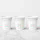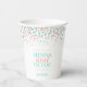 Personalice estos vasos de papel de la fiesta nupcial con los nombres de su pareja y la fecha de su boda. Diseminación de confeti de puntos redondos en agua y naranja de coral. Hay otros elementos coincidentes y opciones de color disponibles. Arte gráfico original y diseño de Sarah Trett para www.mylittleedenweddings.com