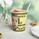 Cuidados y divertidos vasos de papel de 1er cumpleaños con una marca de precaución con tipografía moderna. Reemplace fácilmente los detalles del evento y la foto del bebé en esta plantilla.