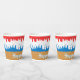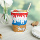 Tazas de papel de cumpleaños personalizables con diseño de conos de helado americanos y purpurina. Un diseño super adorable de helado en tres colores, rojo, blanco y azul, con purpurina de estrellas a juego, todo sobre un cono de waffle en la parte inferior.