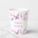 Vasos De Papel Cumpleaños de la mariposa púrpura rosa