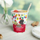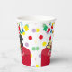 Labradores Amarillos y Negros Personalizados Copas de Papel de Cumpleaños para los amantes del perro. Personalizado caprichosa y graciosa de Labrador Recuperador creada por Naomi Ochiai de Japón. Dos cachorros de Labrador están celebrando su cumpleaños!! El Labrador Amarillo Puppy y el Labrador Negro Puppy están sentados en la Mesa Roja en el colorido fondo de los puntos polka.