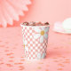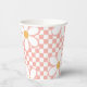 Vasos De Papel Cumpleaños de Retro Checker Pink Daisy