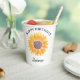 Esta Copa de Papel de Fiesta Feliz Cumpleaños está decorada con un girasol color amarillo acuático. Personalizable fácil. Acuarela original © Michele Davies.