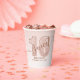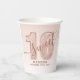 Vasos de papel para cumpleaños dieciséis con guión y brillo en color rosa dorado. Este diseño trendy está acentuado con brillo contra un fondo ombre. Personalice este diseño personalizado con sus propios detalles.