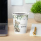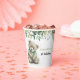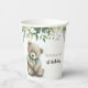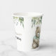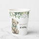 Cute boho acuarela teddy oso verde hojas de cualquier edad fiesta de cumpleaños copa de papel. Personalizar con tu nombre y texto.