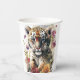 Cute Watercolor Wild Tiger Cub Kids Birthday Paper Cups presenta un tigre de acuarela adorable rodeado de flores silvestres. Perfecto para celebraciones de cumpleaños infantil, duchas para bebés y más. Diseñado por Evco Studio. Para coordinar elementos, vea www.zazzle.com/store/evcostudio