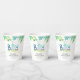 ¡Es un tazas de papel de papel de bebé con tema de los Boy Dinosaur! El diseño presenta una adorable acuarela de un bebé dinosaurio recién nacido nacido de un huevo, una tipografía colorida, hojas de palma y otras plantas botánicas.