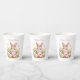 Cute bunny rabbit with pink blush peony flowers watercolor party paper cups. Perfect for easter.