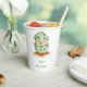 Cute paper cups with a chick hatching from its green egg. Perfect to complement your baby shower celebration. The text is customizable and you can even customize it further if you desire. The little bird is one of my illustrations, originally painted with markers and colored pencils. You can find coordinated products in my store.