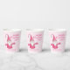 Crea tazas de papel para Navidades personalizados rosas para el fiesta de Navidad con un diseño elegante que incluye un dicho de Feliz Navidad, gnomo alegre con ropa rosa y plantillas de texto para el año y tu nombre de familia.