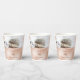 La parte superior muestra una foto de un lindo bebé de raza blanca. La parte inferior presenta un campo de texto oro subió con un texto de cumpleaños personalizado. Elegantes tazas de papel de cumpleaños.