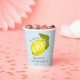 Este lindo y moderno vaso de papel de 1er cumpleaños presenta un gran limón amarillo sobre un fondo azul claro. Personalízalo para tus necesidades. Puedes encontrar productos coincidentes en mi tienda.