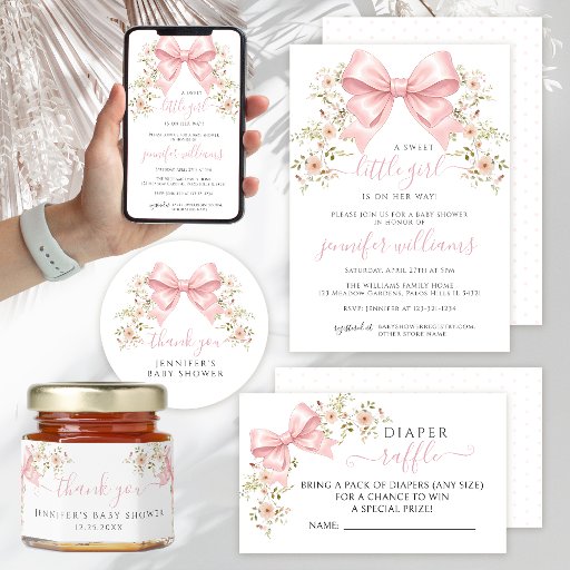 Pink Floral Coquette Bow Baby Girl ShowerDiseñado por Ramune Freze