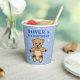 Cute Teddy Oso Blue Star Cups de Papel de Cumpleaños. Esta invitación tiene un lindo oso de peluche de fondo azul con estrellas blancas. El texto es de color azul. Añade tu nombre y edad.