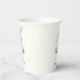 Adorables tazas minimalistas de papel para bebés con un lindo conejo blanco sentado sobre el césped para complementar a su fiesta de ducha de bebé de bosques. Ilustrado y diseñado por Patricia Álvarez.