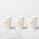 Nuestros pequeños tazas de papel de cumpleaños con tarta de calabaza y yerba. Tema del primer cumpleaños del otoño.