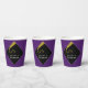 Vasos de fiesta de graduación creativos de color púrpura, negro y dorado. Para personalizar, edite el texto para agregar el nombre del graduado. ¡Felicidades!