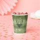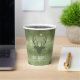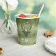 Este vaso de papel presenta silueta de cortantes de venado y copos de nieve en verde oscuro sobre un fondo verde musgo de efecto texturado. Se ha proporcionado texto opcional de 'Felices Fiestas' y una plantilla para agregar tu nombre y/u otro texto. Busque ID861 a ID864 para ver opciones de color adicionales y otros productos en este moderno conjunto de diseño de Navidades.