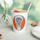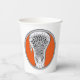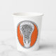 Diseño único de lacrosse con arte de palo de lacrosse en fondo naranja para eventos de equipo y noche de graduación de seniors.