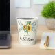 Estas divertidas tazas de papel para desayuno nupcial presentan girasoles rústicos y follaje de eucalipto. A tus invitados les encantarán estas tazas de papel que se ajustan a otras ideas de desayuno nupcial.