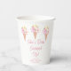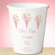 Esta taza de papel para despedida de soltera con tema de helado está decorada con flores de acuarela y conos de helado.
