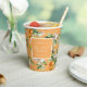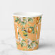 Vasos de papel bonitos para su despedida de soltera o desayuno de novia. El diseño presenta un patrón de acuarela de frutas cítricas que incluyen naranjas, limones, flores y vegetación variada. Personalice con el nombre de la novia y la fecha de la fiesta. Un bonito detalle para su barra de cócteles, tazón de ponche o estación de agua