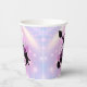 Taza de papel divertida de despedida de soltera disco diseñada para el equipo de la novia. En hermosos colores gradientes desde lavanda hasta periwinkle y rosa con una bola de discoteca funky, silueta de vaquero domando un potro, fuente retro glamorosa "Bride 'em Cowboy" (el equivalente country de 'ponle un anillo') y fondo de luces de discoteca. Busque ID928 para ver otros productos de esta colección de moda.