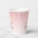 Vasos de papel para despedida de soltera glamurosos y femeninos con brillo rosa falso que gotea sobre un fondo rosa ombre y "Despedida de Soltera" en una hermosa letra. Personaliza con tu nombre y fecha de la despedida.