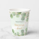 Para una despedida de soltera. Un fondo verde acuarelado con pinceladas y con polvo de brillo falso. Decorado con follaje de eucalipto, hojas, vegetación. Personalice y agregue el nombre de la futura novia.