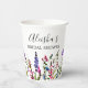 Las tazas de papel para Despedida de soltera de flores silvestres son editables para incluir el nombre de la invitada de honor junto con el nombre del evento (despedida de soltera, baby shower, fiesta de cumpleaños, boda, etc.). Se coordina con todo en nuestra colección de flores silvestres.