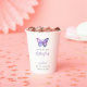 Tazas de papel personalizadas para Despedida de soltera con tema de mariposas elegante y sencillo "Él le da mariposas en el estómago"
