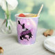Cubo de papel divertido de despedida de soltera con temática de discoteca diseñado para el equipo de la novia. En hermosos colores degradados desde lavanda hasta periwinkle y rosa con una bola de discoteca divertida, silueta de vaquero domando un bronco, fuente retro glamorosa 'Bride 'em Cowboy' (el equivalente country de 'ponle un anillo') y fondo de luces de discoteca. Busque ID928 para ver otros productos de esta colección de moda.