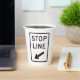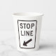 Una señal de la línea de parada con una flecha. Este diseño parece realmente efectivo en estas tazas de papel