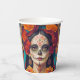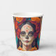 Este hermoso vaso de papel está inspirado en el Día de los Muertos, que presenta un ilustracion de una "Catrina". Esta taza sería perfecta para un Día del fiesta muerto o cualquier otro fiesta con el tema del Día de los Muertos.