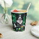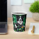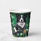 Un amigo peludo detrás de las manillares de una brillante bicicleta verde, usando un traje verde del Día del San Patricio que hace que las cabezas se vuelvan. El perro está vestido con un conjunto festivo, con una corbata verde de arco y un sombrero superior a juego que se sienta cómodos sobre su cabeza. El conjunto presenta un diseño intrincado de rocas de champú y leprechauns, lo que deja claro que este perro está listo para celebrar el Día de San Patricio con estilo.
