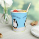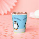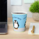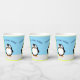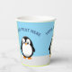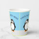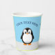 pingüino al estilo personalizado. Cielo azul en el fondo. tazas de papel decorativas personalizados para la decoración fiesta. Editar texto al personalizar. Una idea de regalo para los amantes del pingüino.