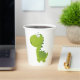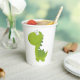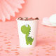 Un adorable dino verde sonriente. Este diseño parece realmente efectivo en estas tazas de papel