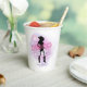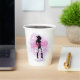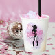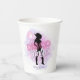 Diseño elegante y personalizado de vaso de papel para despedida de soltera disco para el equipo de novia. En hermosos colores gradientes desde lavanda hasta pervinca y rosa con una bola de discoteca divertida, silueta de vaquera, fuente retro glamurosa "Disco Darlin'" y un fondo de acuarela. Este diseño sofisticado y elegante se adapta fácilmente a cualquier cena especial y/o evento de baile. Busque ID928 para ver otros productos de esta colección de moda.