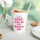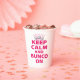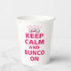 Divertido Keep Calm y Bunco On fiesta cup para su próximo evento Bunco. Lleno de bebidas, tentempiés o dulces. Tipografía rosa moderna con corona y tres dados de bunco afortunados. Perfecto para todos los jugadores.